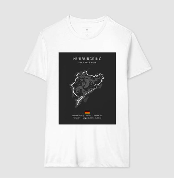 Arte criada com linhas clean do circuito de Nurburgring, em Nurburg – Alemanha e detalhes geográficos.